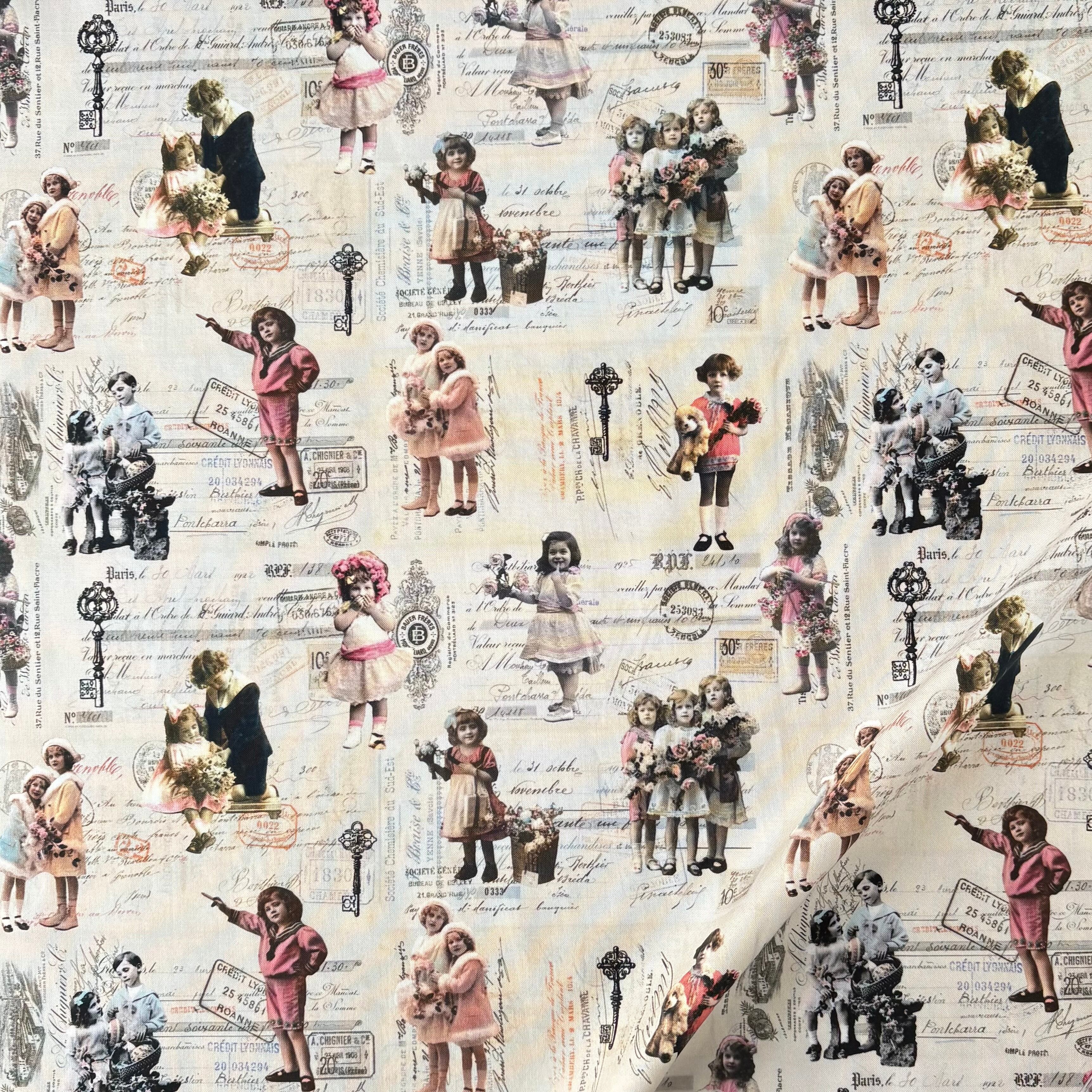 【50㎝カット】レトロキッズコラージュ柄